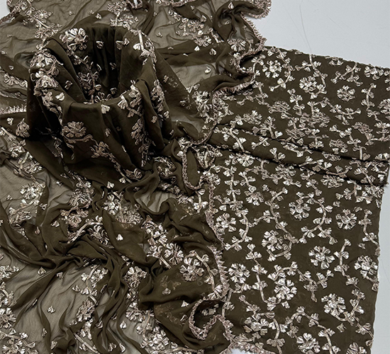 👉 Bamber Chiffon Shirt with full jaal silver LCD gota work