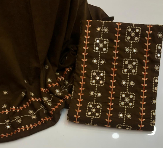 Khaddar Gota Handwork Collection – 2 Piece Embroidered Set – Brown