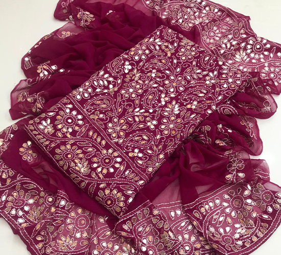👉 4-Side Border Dupatta with Chikankari and Press Gota