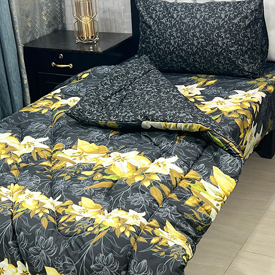 Single Bed Comforter Set – 3 Pieces – Black & Yellow Floral