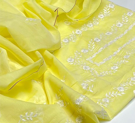 Soft Paper Cotton Handwork Embroidered Suit – 2 Piece – Pastel Yellow
