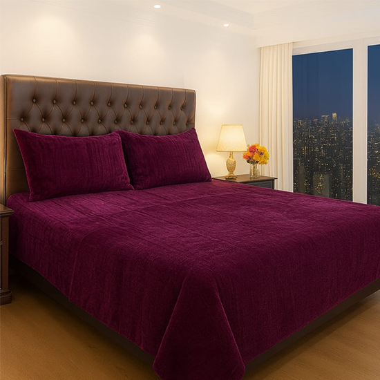 Soft Velvet Fleece Bedsheet – Winter Collection – Burgundy